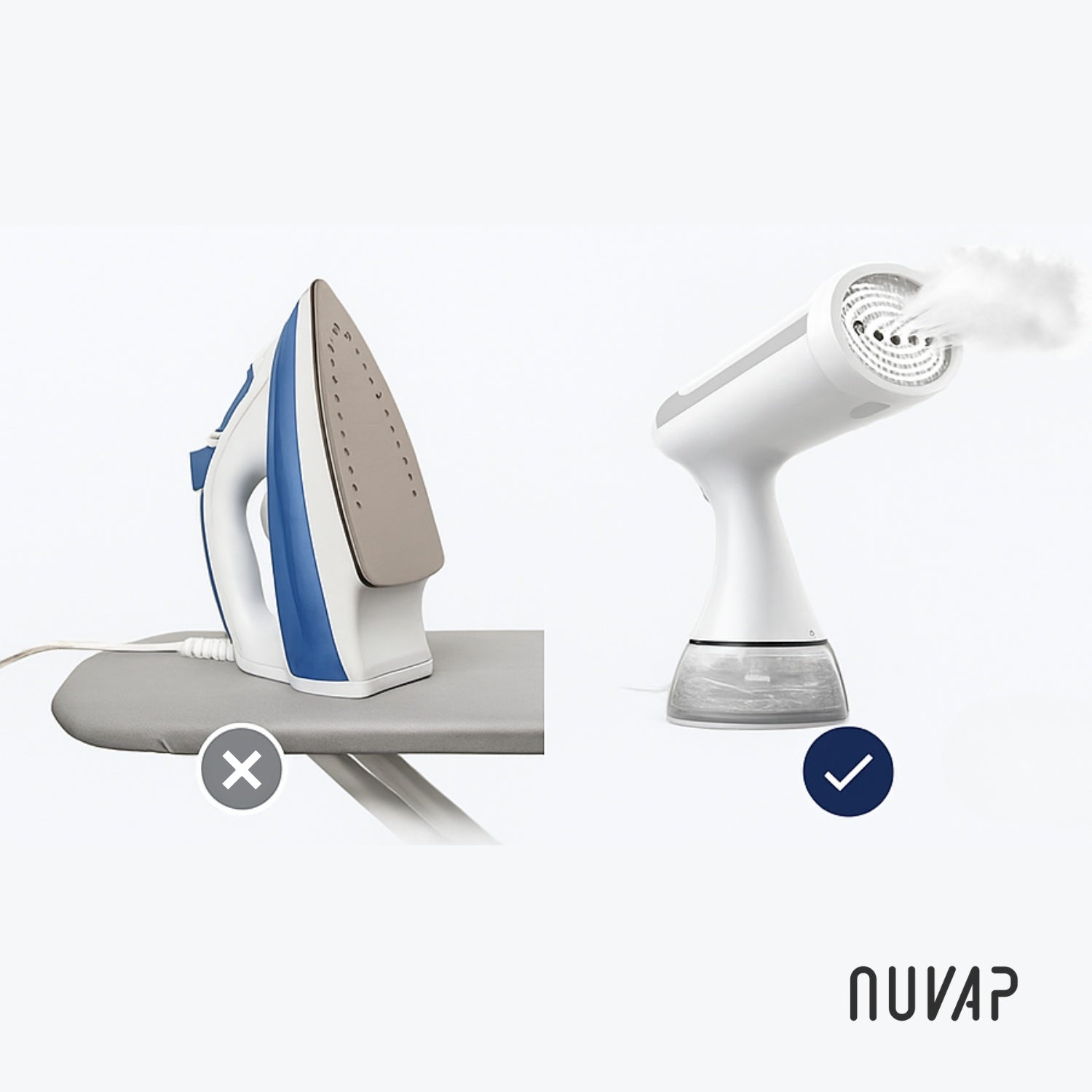 Les fers traditionnels prennent de la place, mettent du temps à chauffer, et peuvent abîmer vos vêtements. Nuvap® simplifie votre routine textile : plus rapide, plus sûr et prêt à l’emploi, même en déplacement.
